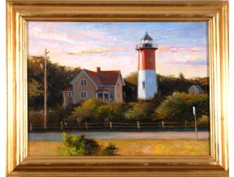In this painting I have tried to capture the evening light as it reflects off one of Cape Cod's most historic lighthouses, the Nauset light. The painting is done in oils on linen canvas.
