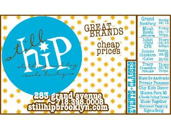 Still Hip has the feel of a boutique with high end products and super friendly staff, but there is a difference. We are a resale clothing, toy and gear shop run by parents who know their product and clientele. There is an area designated for classes where you can enjoy music, dance, art and science with your child.
