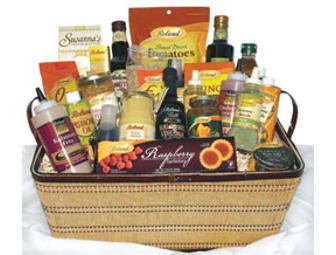 Dig into a delicious gourmet gift basket featuring Roland's Diamond Balsamic Vinegar, Specialty Oils, Green Orzo, Wine Vinegars, Curry Sauces, cookies and more!