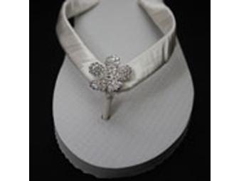 Want to dance the night away at your wedding but not have aching feet while you do it? How about wear some classy, spakly flip flops instead. J*Flops will custom create a special pair of flops just for you!