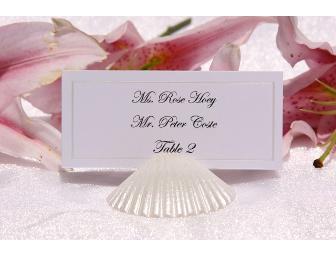 Set of 25 Pearlized Scallop Place Card/Escort Card Holders. These are real scallop shells that are handmade and handpainted with a pearlized finish.