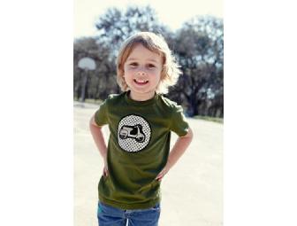 The design has been satin stitched (will not fray) on a forest green American Apparel t-shirt size 2T.