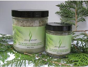Invocation Bath Salts (16oz) contains a combination of coarse sea salt from the Guérande (Brittany, France), with a concentrate of our Liquid Smudge and Jojoba oil. Our Bath Salts are currently 85% organic, with all other ingredients being botanical and natural in origin. (Plans are in place to make this product 100% organic within a short period of time). Liquid Smudge is an aromatherapy perfume that contains only high quality ingredients and which requires a 2 month period to mature. It costs more to do it this way, but it's worth it. You know how effective the Invocation Liquid Smudge is to clear the air, remove negativity, and uplift your spirits. Just wait until you try immersing yourself in these new Bath Salts!