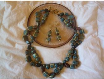 Original and Unique beautifully Hand-crafted Aqua-Blue Stone Necklace and Earrings by Anne Metaxas
