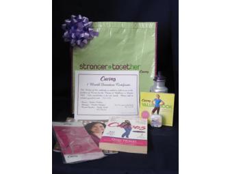You will also receive several other items to help you on the way to becoming healthier including a Curves water bottle, a copy of the book Curves by the company's founder, a copy of the Curves magazine, liv: a breast self- exam aid, sugar free mints, coupons for healthy goodies, and a tote bag to carry your work-out clothes.