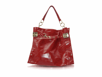 The scarlet, red Susan is a classic, leather tote with sleek lines and flashy hardware. Inside you will find a cell phone and PDA pocket as well as a zippered compartment. It stand 35 cm wide and 13 cm deep. The lining is 100% cotton.