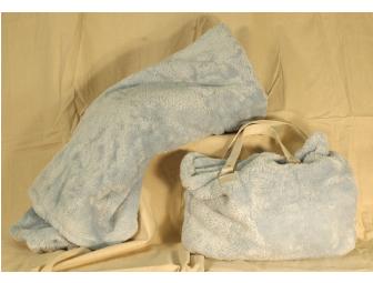 Wrap up in this ice blue furry blanket with carrying bag from Z Gallerie. Blanket is size 52"X72".