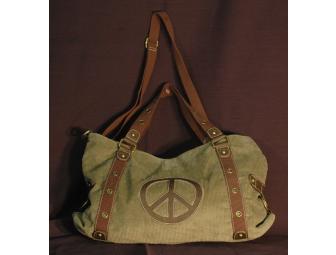 Dark green corduroy and leather "Peace" bag from Delia's.