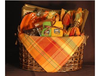 Just in time for Thanksgiving! Basket includes six (6) "Happy Fall Ya'll" placemats, a "Happy Fall Ya'll" table runner, six (6) bronze scroll napkin rings, Pumpkin chip and dip, bronze ceramic owl, set of four owl spreaders and set of four owl hand towels. Perfect hostess gift for fall get togethers!