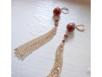 14k gold-filled large tassel earrings in goldstone. Each earring is 4.5" in length. For pierced ears.