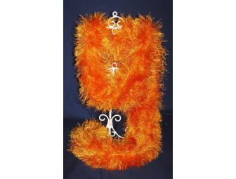 Sport one of the Fighting Seahorses school colors at fall and winter sporting events. This orange fuzzy scarf is hand knit and measures 6 x 60 inches.
