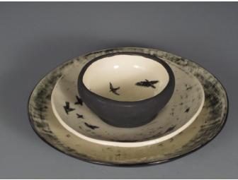 The narrative sculptures by ceramist Jennifer Kincaid range from "journey"bowls to figurative platters. Exploring time, age and basic human emotions, she uses simplified figures, forms and words in clay to articulate her thoughts.
