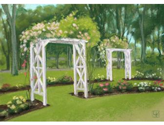 Soft pastel painting on toned paper, 10" x 8" plus frame. This painting is of the rose garden arbors in nearby Capron Park, Attleboro MA.
