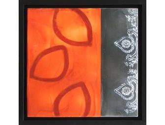 Encaustic painting, painted with pigmented beeswax on board. 14" X 14" in a black wooden floater frame.