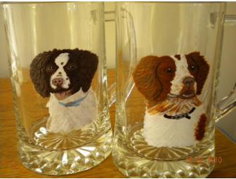 Anyone would enjoy this set of Beer Mugs hand painted with one liver and white Brittany and one orange and white Brittany.