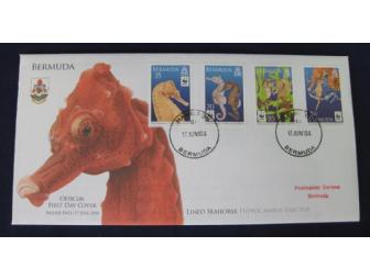 This beautiful and elegant seahorse can be found in the water from the southern tip of Nova Scotia along the east coast of the United States and south to Mexico, the Caribbean and Venezuela. It is also native to Bermuda. Designer - Derek Miller, Printer - Joh Enschede Security Print, Process - Lithography, Stamp Size - 28.45mm x 42.58mm, Value 35c, 70c, 85c, $1.25, Release Date June 17, 2010. Stamps are on the Official First Day Cover and stamped on that day. Set of four stamps - one for each amount.