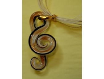 Keep the music with you all day long when you wear this glass music symbol around your neck!