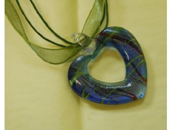 Let your heart shine with this lovely blue glass necklace. It's a lovely addition to any collection!