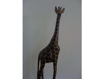 This 24" carved wooden giraffe from Kenya is a showpiece! It will look great standing on a table or dresser or alone on a raised hearth.