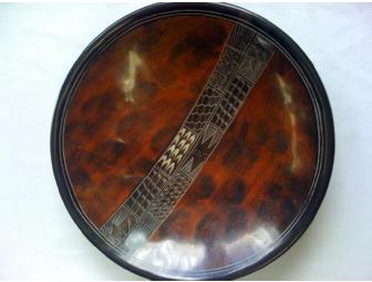 This hand crafted and etched soapstone bowl comes from the Kisii area in Kenya. Kisii soapstone can only be found in the Tabaka Hills of Western Kenya. The bowl measures 12 inches wide and comes with a stand for display purposes.