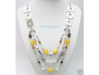 GORGEOUS Silver (Rhodium-plated) 3-Tier Necklace featuring beautiful Glass Cat's-Eye and Art Glass Beads. 24-27" (the shortest Tier - the longest is longer!) with a Lobster Clasp and Lia Sophia Logo Charm.