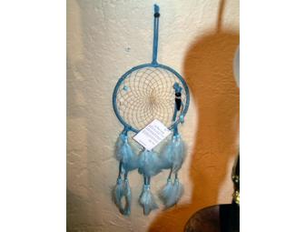 Blue dreamcatcher with arrowhead. Circle has a 6 inch diameter.