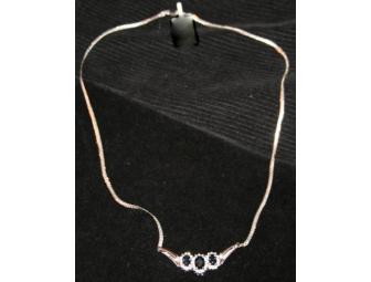 A beautiful 17" diamond necklace in white gold, comprised of 36 diamonds and very lovely semi precious stones. A wonderful combination of gems.