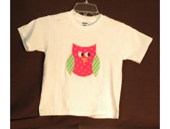 Super cute owl t-shirt from Polka Dot Monkey.com. Size youth small (6-8). Owl on the front and pink heart on the back.