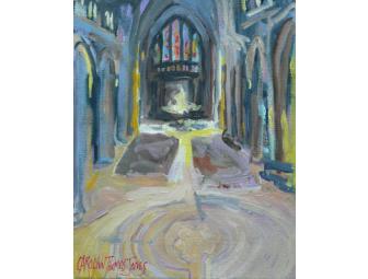 This is an 8 x 10 oil painting, on gallery wrapped canvas (unframed) completed in September 2010. Additional labyrinth paintings by this artist can be found at www.carolynnthomasjones.com