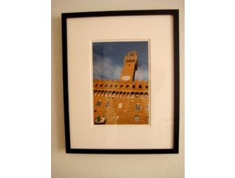 This color photo was shot of the tower of the Palazzo Vecchio in the Piazza della Signoria in Florence. The image is professionally matted and framed in a 16x20 frame. This is one of several framed prints in Patrick Casey's collection of photos from Italy.