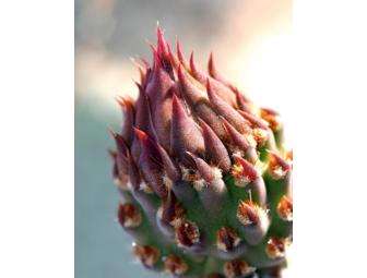 This print is mounted on 1/4in black standout board and is ready to hang. The mounting looks very clean and modern. This print measures 11x14. This photograph entitled "Ladyfingers" is a macro shot of a cactus bud.