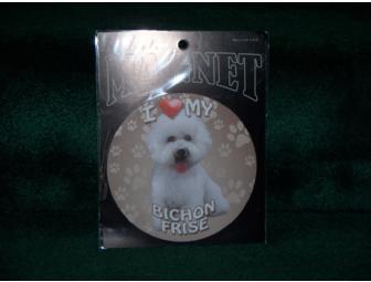 Cute car magnet to show others your love of Bichons. Magnet is 5 X 5. Its says I LOVE MY BICHON FRISE.
