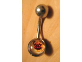 This navel ring is a standard barbell shape, featuring an adorable inlay of a pug. Has never been worn - brand new. See other auction items for other dog breeds.