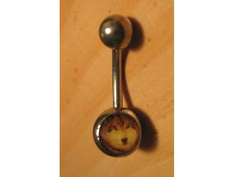 This navel ring is a standard barbell shape, featuring an adorable inlay of a wolf. Has never been worn - brand new. See other auction items for other dog breeds.