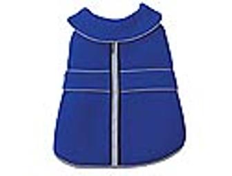 Great cold weather attire! Toasty fleece inside and out, with a thermal core to capture body heat. This jacket features reflective trim on all edges and a reflective stripe down the back. Adjustable Velcro tabs with a convenient leash hole on the back. Sammy models his, but this one is brand-new, still in the package. Medium size (16” length). Machine wash in cold water, gentle cycle, and line dry.