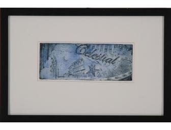 The concept of this etching done in college, springs from memories of childhood dreams of living in the theater district of New York City. A close friend of mine and I envisioned the wonder of the grand old theaters, costumes, music and make-up in such a romantic and classical way. Since visiting Broadway, I've created a series of monotypes that portrayed my love of theater and my friend and I. It's make-believe musical, "Celestial".