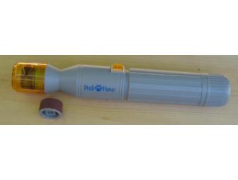 Your dog will love having his nails filed and it is so easy to use. Battery operated...takes 2 C batteries. Comes with 2 emery filing wheels to gently file their nails. Can be used for dogs or cats.