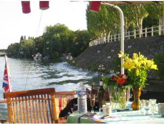 Luncheon for two aboard lovely boat docked in the center of Paris. Complete with French menu and wines. Travel to Paris not included.