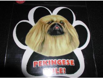 Pekingese Rule Car Magnet. Features Pekinese on paw print.