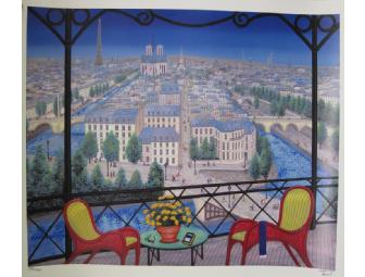His paintings and lithographs from the 1970's and 1980's display characteristics often associated with “naïve” art. His views of Paris, a city which has embraced naïve art, display the attention to minute detail, the use of brightly-colored accents, and the disproportionate and simply rendered figures typical of a self-taught artist. His images of leisure activities—skating, riding in carriages, enjoying music in the park—are reminiscent of the subjects depicted by the French Impressionists.
