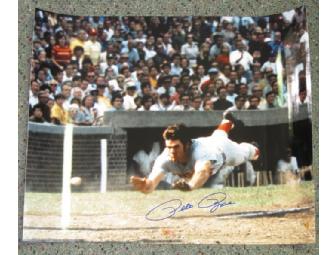 Pete Rose, aka Charlie Hustle was known for his tremendous work ethic and his on the field display of old school hustle. This picture epitomized Pete Rose and is one of the reasons he got his Charlie Hustle name, with plays like this, diving in to the base head first to make the play