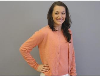 This could be your last chance to purchase this rare peach cashmere sweater set! Nothing feels more luxurious then 100% pure cashmere. Wrap yourself in comfort and extravagance while watching the newest Primary Stages show or while frolicking down 5th Avenue.