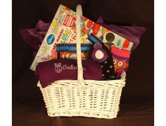 Slip into your jammies! This bedtime basket includes a purple pajama top size XS (4/5) that is embroidered with a little owl and Oakridge and plaid bottoms size XS (4/5). Includes a pair of owl slippers, owl socks, and 10 books.