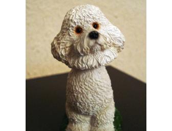 This adorable Bichon will wiggle his way into your heart. The wobbly headed pup is made of high quality, hand painted resin and stands approx. 4" tall.