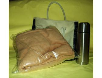 Attend all of the games with the comforts of home. You won't be cold, hungry or thirsty with this bag as you cheer on your team! Bag includes a soft blanket and thermos.