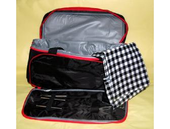 Looking for a great spot to grill some burgers? Just grab this insulated bag, fill it with your food and condiments, and you're off to the park! Bag includes a great plastic table cloth, grilling spatula and tongs.