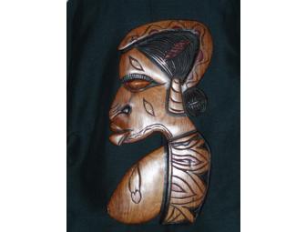 A beautiful handcarved wooden plaque. This is a side portrait of a Senegalese woman. Approximately 7.5" x 15.5".