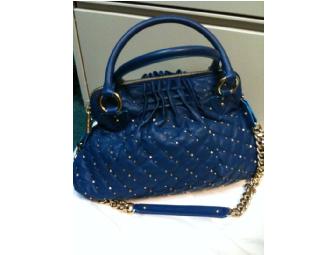 Be the talk of the town when you walk down the street carrying this gorgeous blue 'Cecilia' bag by Marc Jacobs. A popular brand among celebrities, Marc Jacobs has become a symbol of style and fashion, which is shown in this lush, quilted leather bag with gold chains and studded detail work.