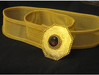 Add pizzazz to your outfit with this great gold costume belt accented by a bronze gem on the buckle.