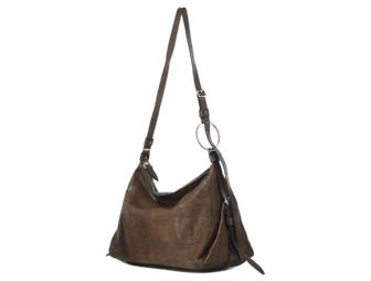 Made of full grain leather, the purse features brushed gold hardware with equestrian details.